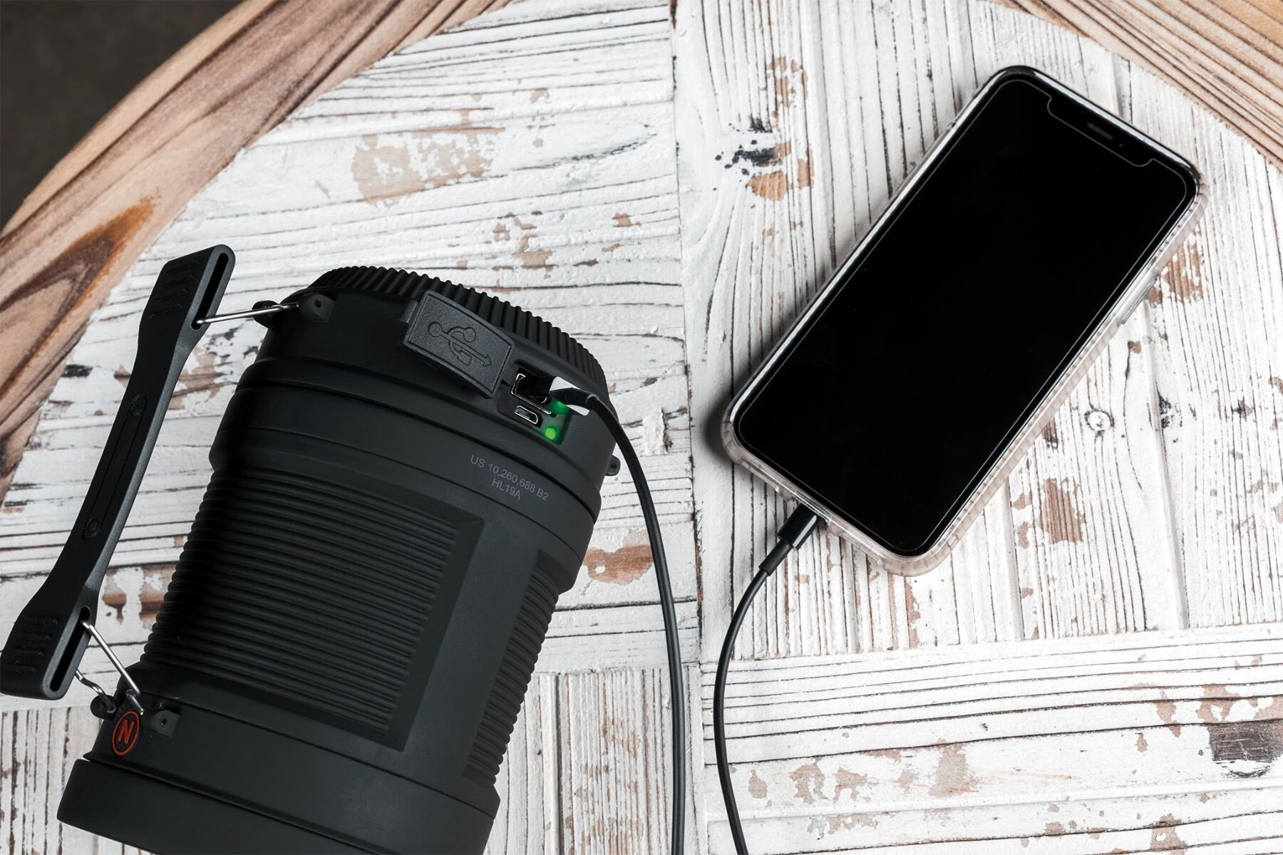 โข Lantern – 300 lumens, 3 hour runtime, 14 meter beam