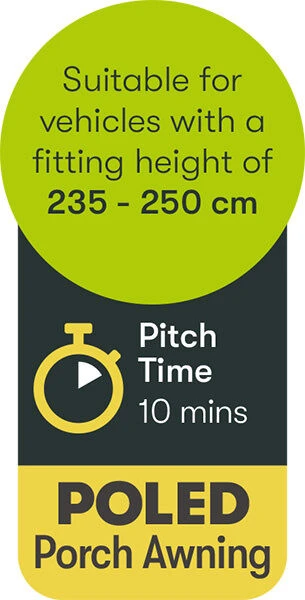 The Quest Falcon collection of awnings is designed for the shorter-term camping experiences, where a lightweight design is preferable for touring purposes. The Falcon Poled 260cm is 2.6m wide, and is very lightweight (7.15kg), with a versatile design.
