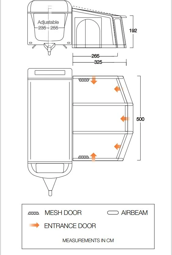 Vango Tuscany Air 500 Elements Proshield Caravan Awning is the largest in the Vango air away caravan collection. The Tuscany is part of the Proshield awning collection, which utilises 300-Denier fabric, and has the Single-Point Airbeam inflation system, for easy, hassle-free pitching.