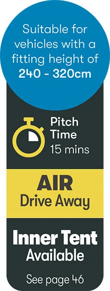 A modern drive away awning with a range of great featured to keep you sheltered and protected whatever the weather, designed for taller vehicles with a fitting height ranging from 240-320cm